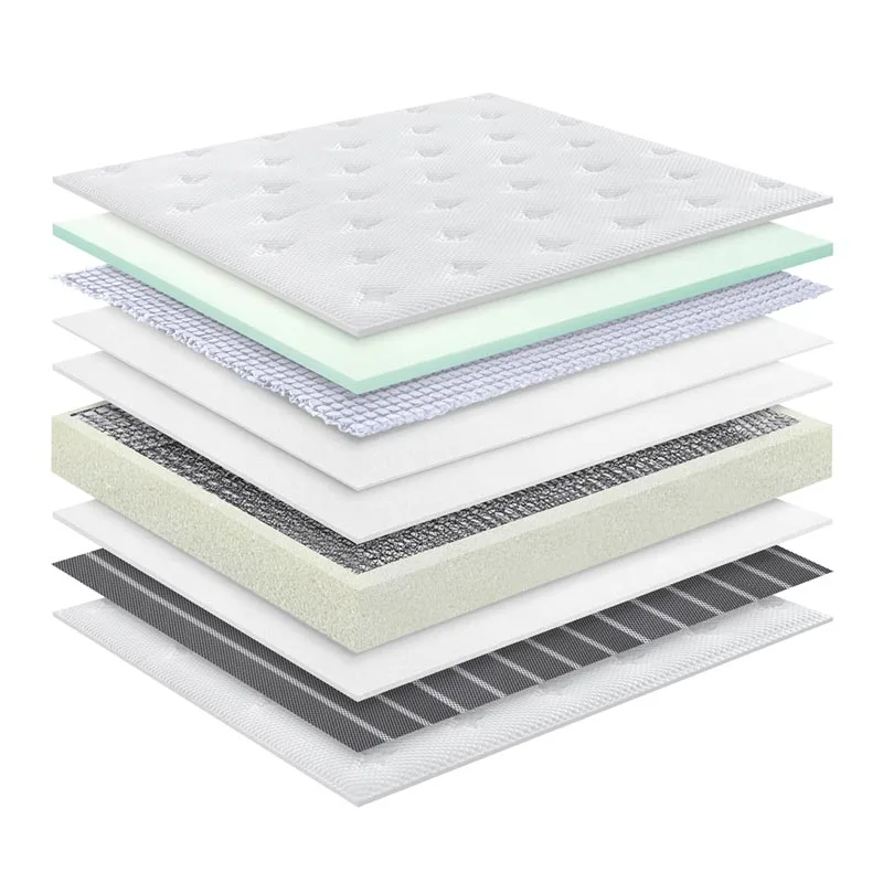 2. Daugiasluoksnė mokslinė formulė: ledinio šilko megzto audinio čiužinys naudoja kruopščiai atrinktas medžiagas ir yra griežtai kontroliuojamas, o tai įkūnija kruopštų meistriškumą. Jame yra ledinio šilko megztas audinys, didelio tankio atšokančios putos, kvėpuojantis 3D sluoksnis, individualiai įdėtos spyruoklės, sveikos medvilnės veltinys, neaustinis audinys, minkštas putplastis ir kvėpuojančios medžiagos.